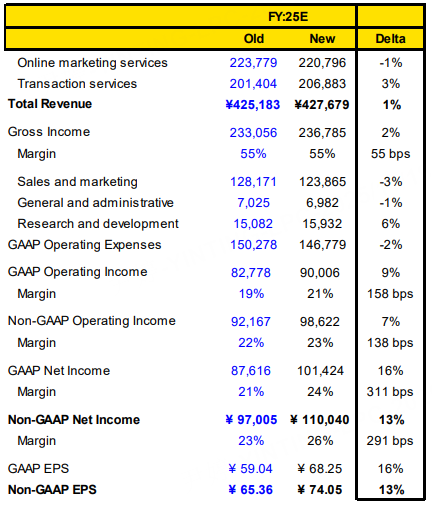 Operating profit came in at RMB 25.0bn, up modestly from RMB 24.3bn a year ago, while non-GAAP operating profit increased to RMB 27.1bn from RMB 26.8bn.