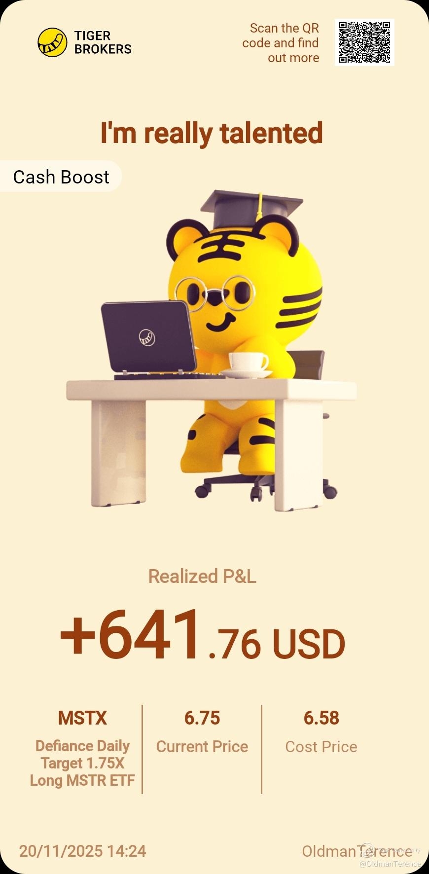Another winning trade from @Oldmantrader made a profit of USD 641 from $Defiance Daily Target 1.75X Long MSTR ETF(MSTX)$.
