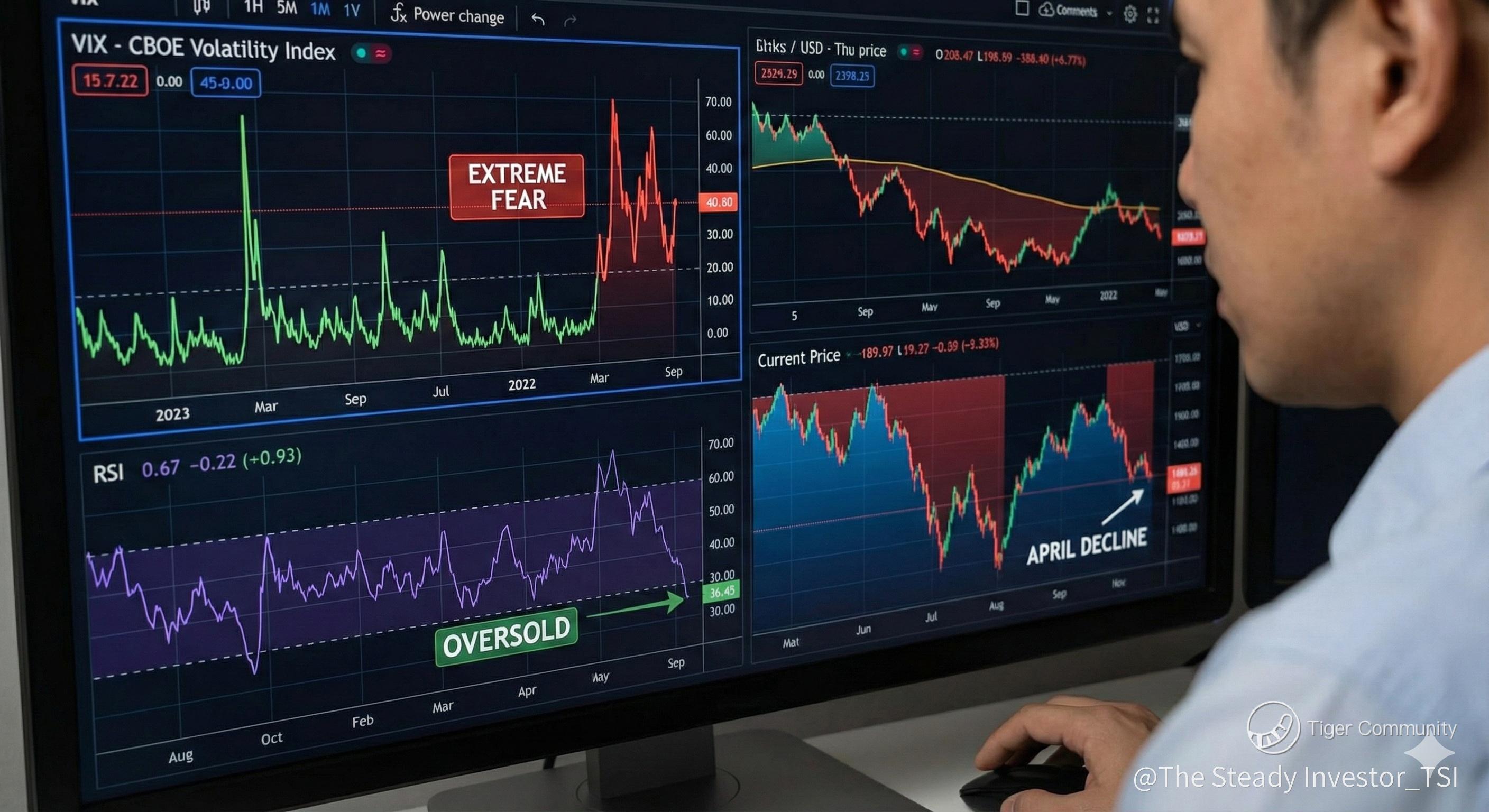 Historically, long-term bottoms are often formed when the VIX spikes above 35 or 40. This signals "capitulation"—when investors are selling not because they want to, but because they have to (margin calls).