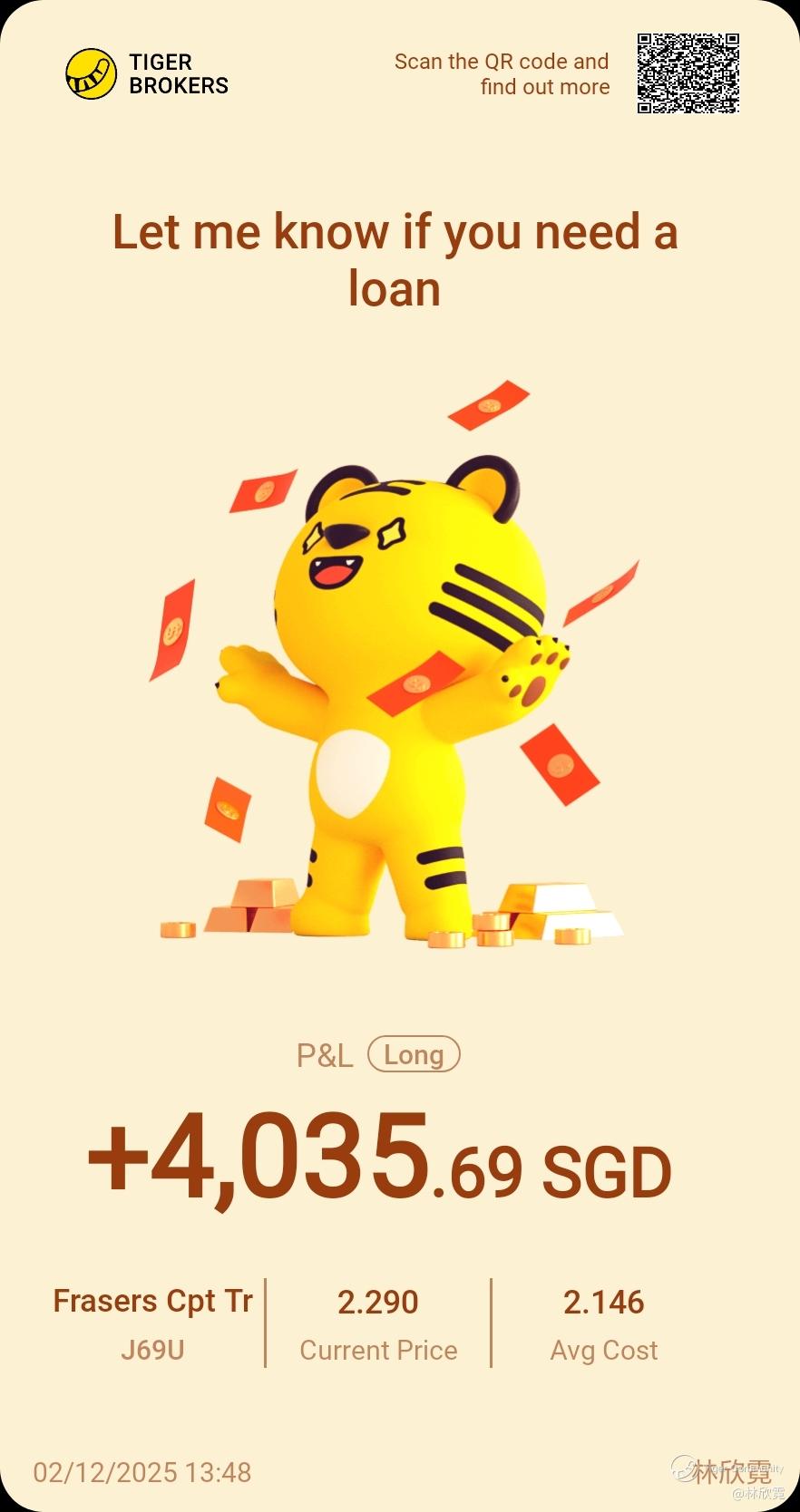 $Frasers Cpt Tr(J69U.SI)$ every month share once, gain share gain dividend