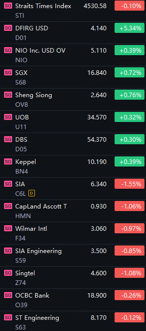SG Morning Call|Singapore Stocks Opened Lower; DFIRG Up 5%; SIA, CapitaLand Ascott, Singtel And Wilmar Down 1%