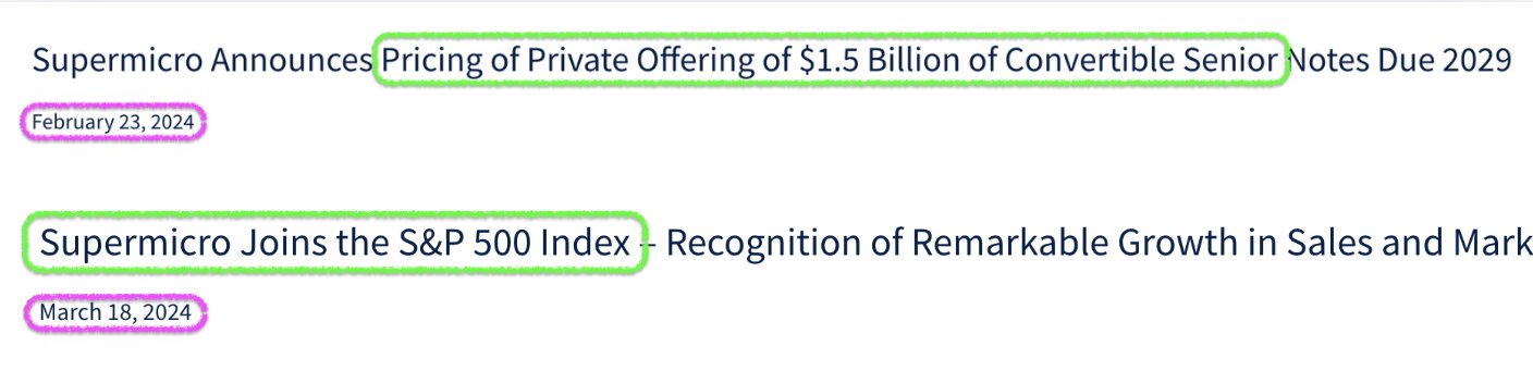 When $SUPER MICRO COMPUTER INC(SMCI)$ joined the S&P, the company announced a $1.5B offering three weeks before the inclusion news.