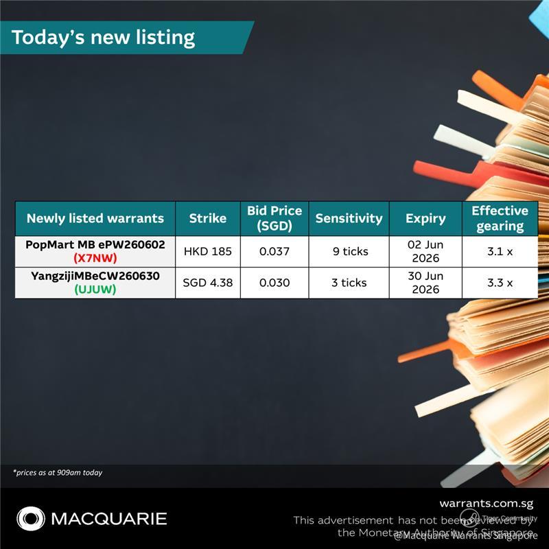 ✴ $POP MART(09992)$ put warrant $PopMart MB ePW260602(X7NW.SI)$ : https://warrants.com.sg/tools/livematrix/X7NW