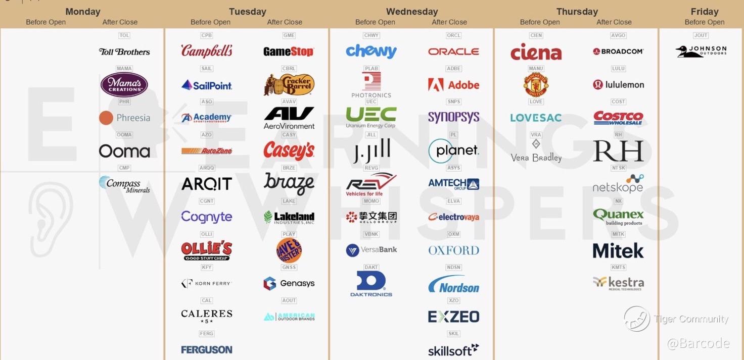 Tuesday is consumer led with $AZO, $CASY, $CPB and volatility magnets $GME and $AVAV.