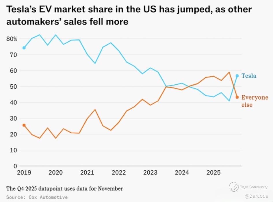 $Tesla Motors(TSLA)$ $Ford(F)$ $General Motors(GM)$ 🚀⚡📈 $TSLA | Market Share Rising While Sales Fall? Read That Again 📈⚡🚀🎅