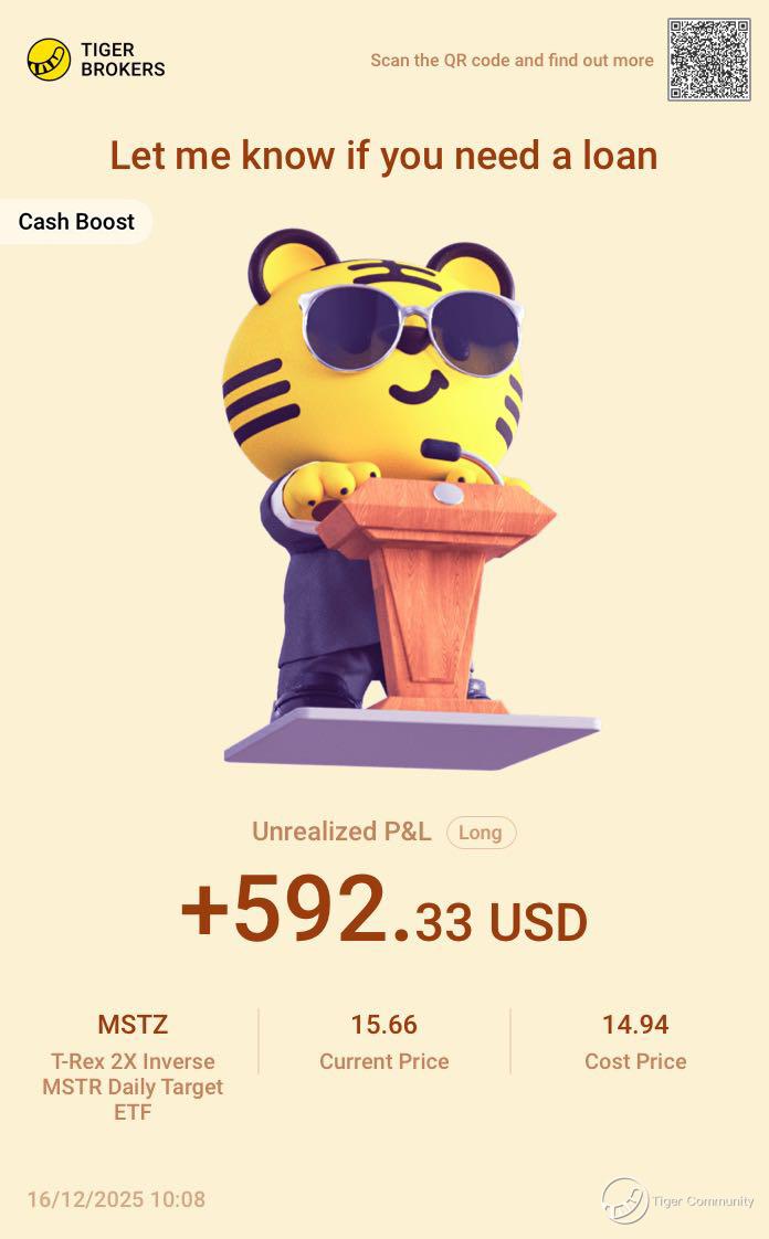 $T-Rex 2X Inverse MSTR Daily Target ETF(MSTZ)$ Haven’t watched the market much lately, but the stocks actually gave a small feedback—happy!