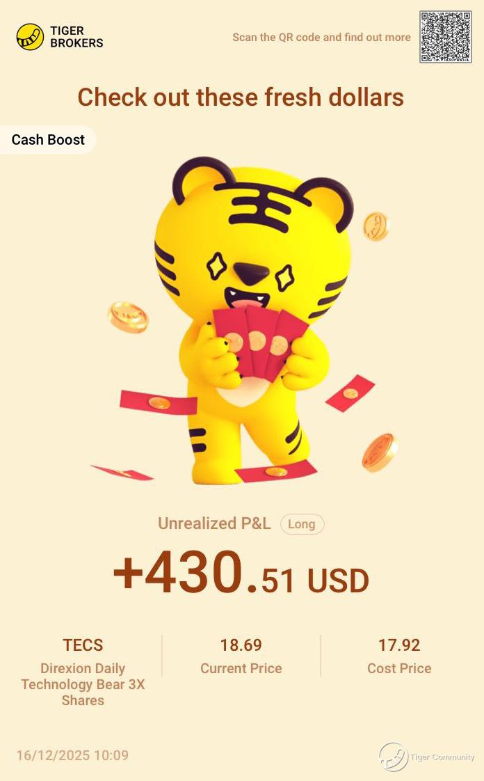 $Direxion Daily Technology Bear 3X Shares(TECS)$ This week’s "milk tea freedom" is thanks to the stock account.