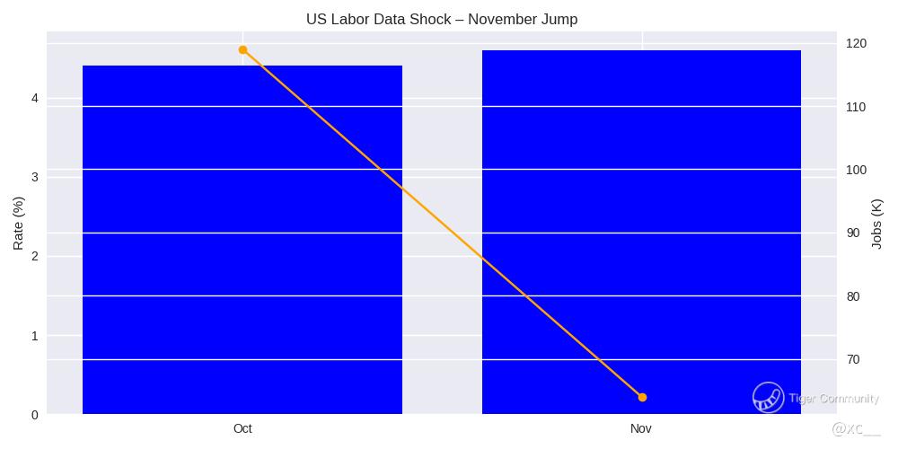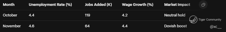 Labor market signals flashed red today as the US unemployment rate climbed to 4.6% in November, surpassing the 4.4% forecast and marking the highest level since September 2021. π© This softer-than-expected print, coupled with just 64,000 jobs added versus 180,000 expected, paints a picture of cooling momentum in the economy, sparking fresh bets on Fed easing to keep growth afloat. With wage growth ticking up 4.4%, but overall hiring slowing, investors are eyeing higher odds for rate cuts in 2026 β a move that could supercharge risk assets like tech giants and cyclicals. π