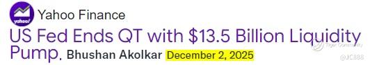 On 02 Dec 2025, it was reported that US Fed formally ended quantitative tightening (QT) after shedding about $2.4 trillion in assets since 2022. (see below)