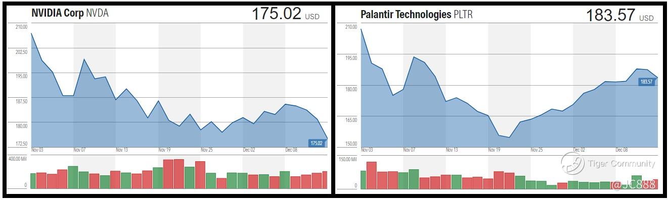 Since his short bets started making its round in the news media (from 03 Nov 2025), both NVDA and PLTR have fallen by -15.40% & -11.40%, respectively, to date. (see below)