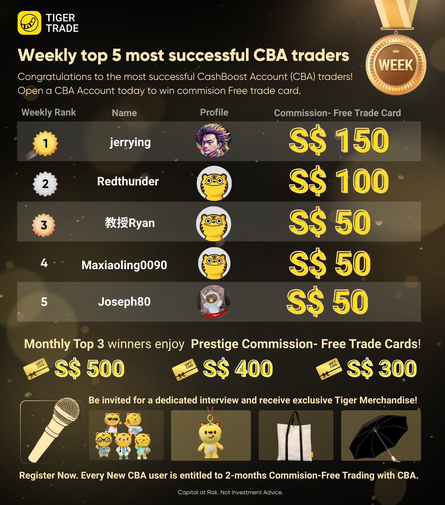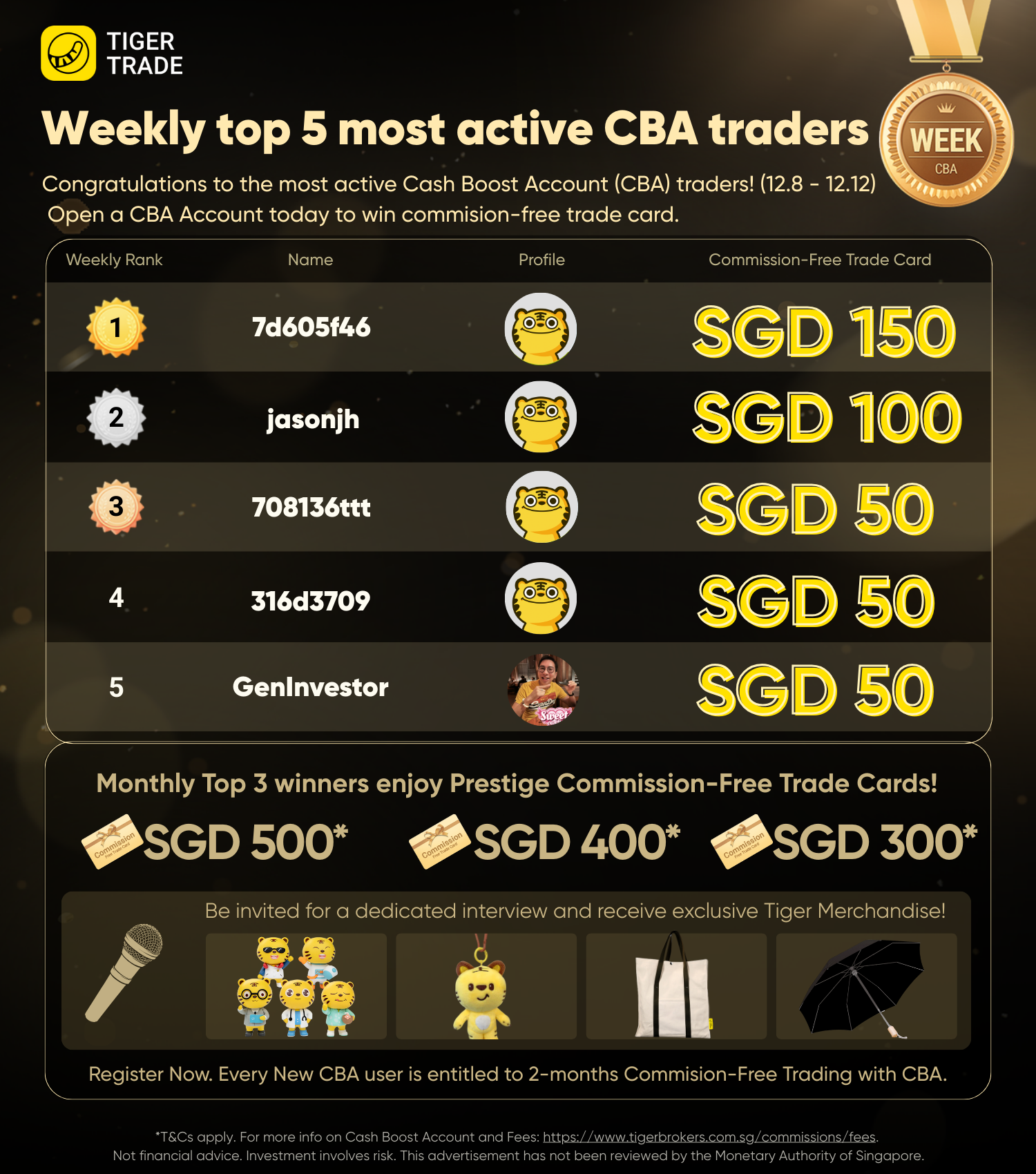 For SG users only, Welcome to open a CBA today and enjoy access to a trading limit of up to SGD 20,000 with unlimited trading on SG, HK, and US stocks, as well as ETFs.