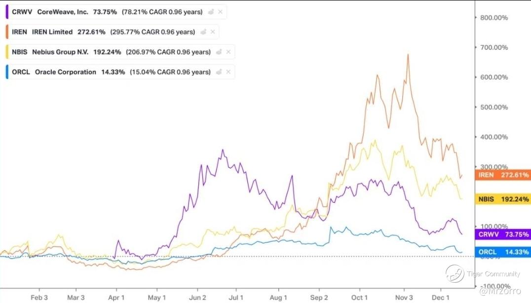 – $CoreWeave, Inc.(CRWV)$ is the most direct “spillover” candidate because it sells the exact product customers need when hyperscaler-style capacity isn't ready: near-term GPU compute. But it's also the most exposed to the same market fear—capex intensity, execution risk, and customer concentration. Investor-focused coverage has highlighted how quickly sentiment can turn when Wall Street starts muttering “AI infrastructure bubble.”