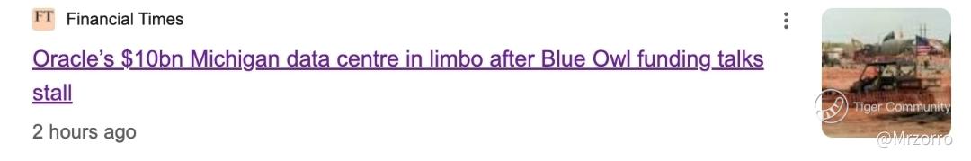 On Dec. 17, the Financial Times reported that Blue Owl's talks with lenders and Oracle to fund a planned 1GW Michigan data center for OpenAI have stalled, derailing a deal that could have included up to $10B of financing plus a large equity investment.