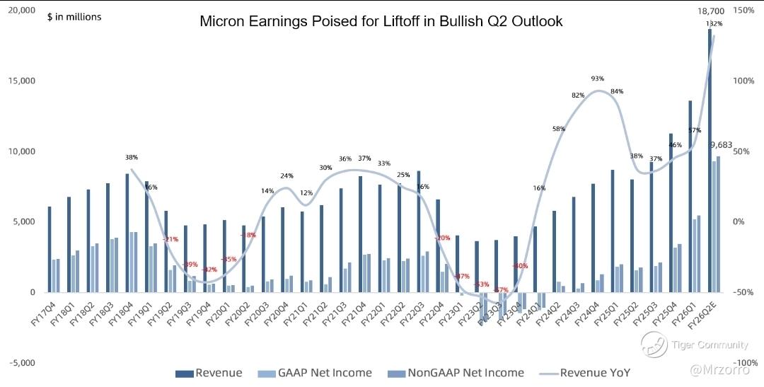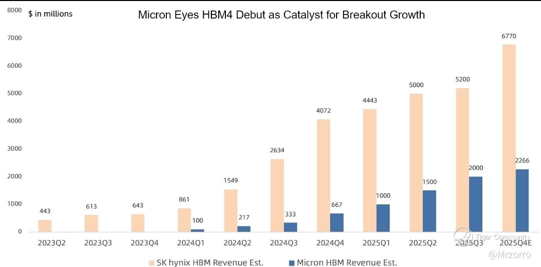 Since HBM is often bundled with AI chip shipments, HBM capacity to some extent influences AI chip volume. In this report, Micron did not disclose specific HBM revenue figures, stating only that it was higher than the previous quarter's $2 billion. However, management released extremely optimistic guidance. Micron's HBM4 product is expected to begin ramping next quarter, and the entire 2026 HBM capacity is already sold out.