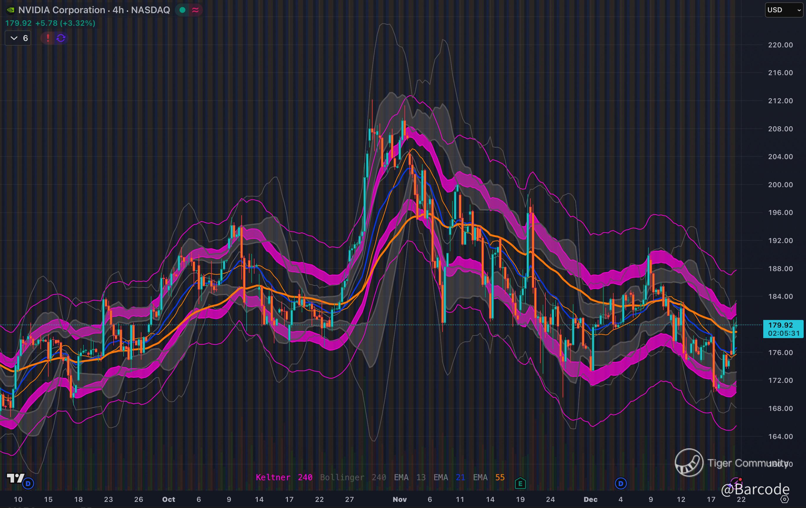 Iβm focused on the $180 region as a key structural zone. On both the 30-minute and 4-hour charts, price has reclaimed short-term momentum while remaining well-contained inside Keltner and Bollinger regimes. This is controlled rotation, not euphoric breakout behaviour. Into OPEX, dealers tend to pin price near high open-interest strikes, suppressing intraday range. Post-expiry behaviour will matter far more than the expiry itself.