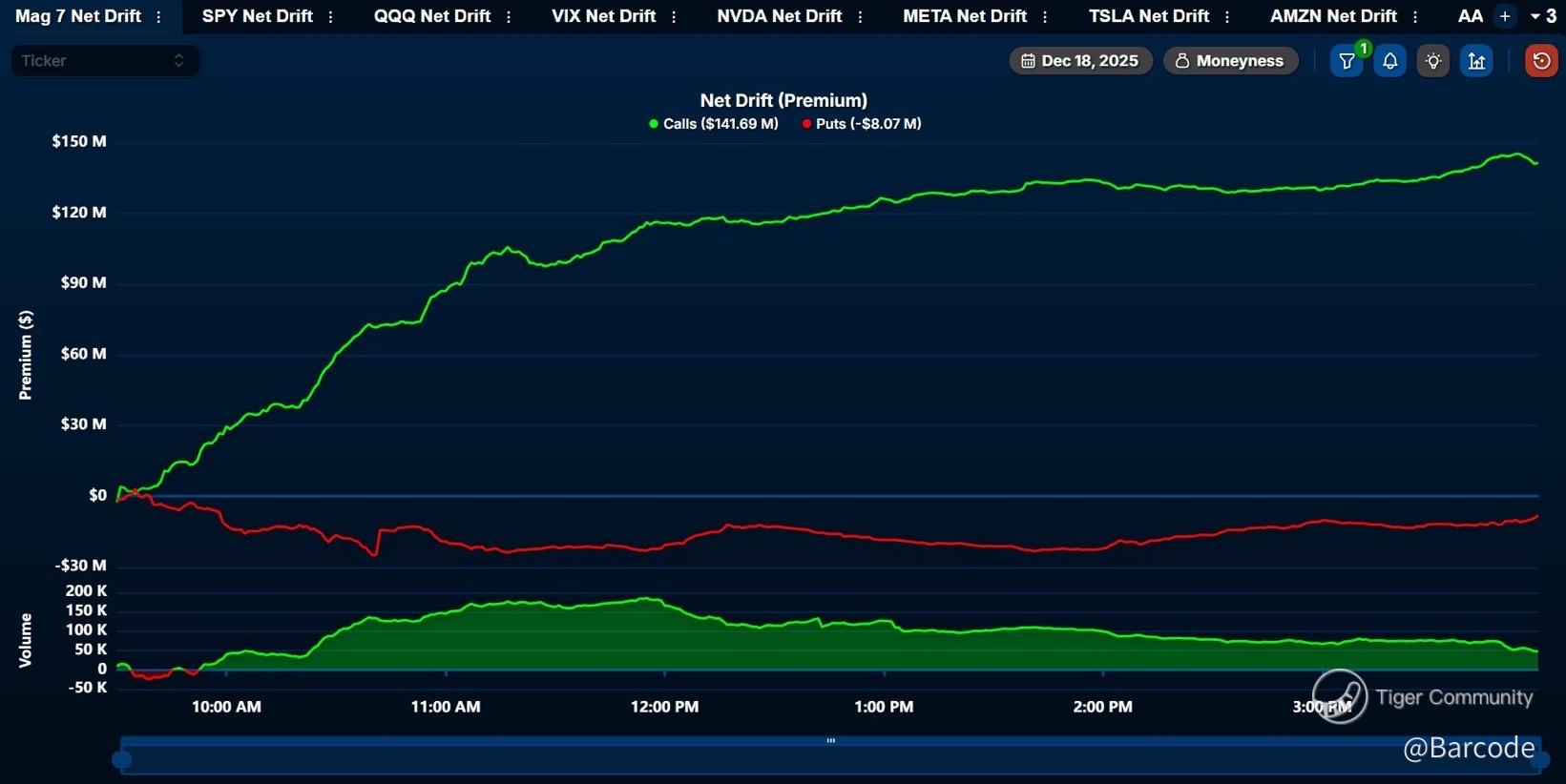 Through recent chop, Mag 7 absorbed ~$142M in net short-dated, single-leg call buying. That is not defensive positioning. With record options expiration hitting, tech leading, sentiment stabilising, and macro shocks largely absorbed, the question is whether post-OPEX flows reassert directional momentum into year-end or simply extend the grind.