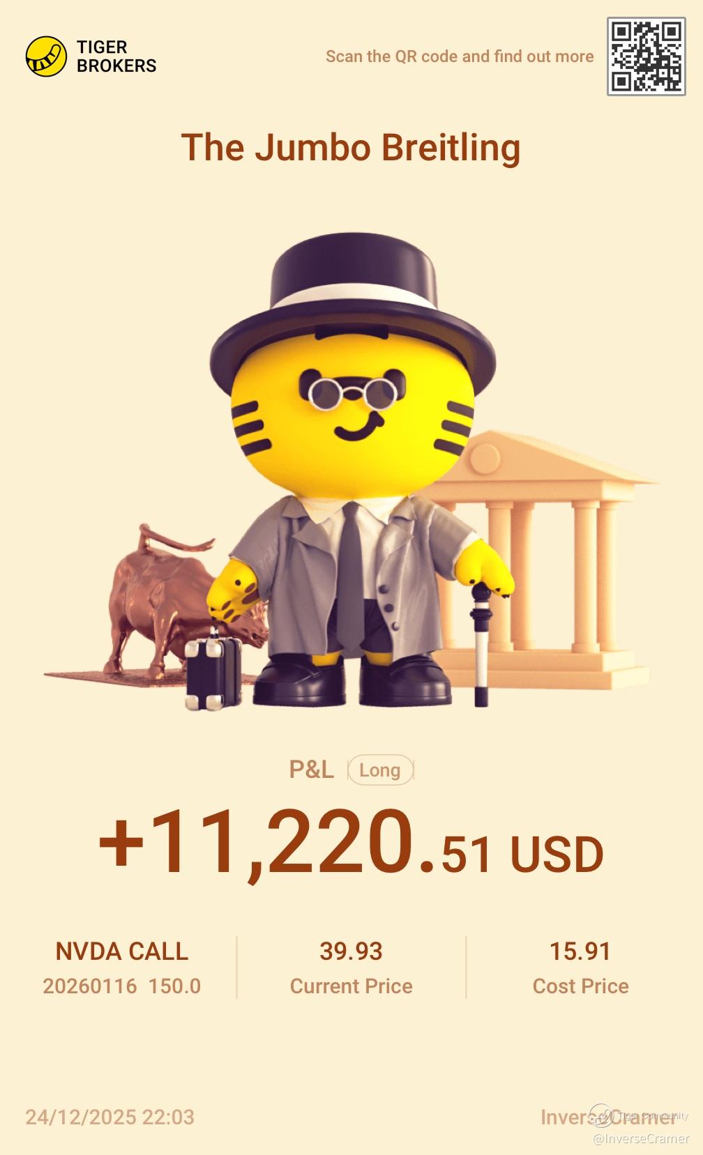 $Tiger Brokers(TIGR)$ Finally can afford to indulge in a cup of Chagee, all thanks to Santa Huang. $NVDA 20260116 150.0 CALL$ Merry Christmas everyone! #Huat #Toto$5m