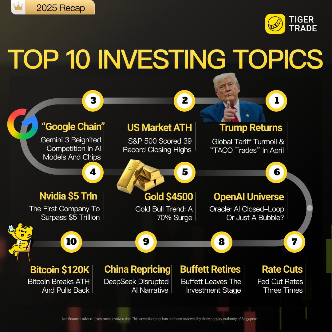In 2025, key investment trends included the return of Trump sparking trade tensions, record highs for the S&P 500, Nvidia surpassing $5 trillion, gold hitting $4500, the rise of Google blockchain, OpenAI advancements, rate cuts boosting tech stocks, the retirement of Buffett, China stock repricing, and the volatile surge of Bitcoin past $120K。。。