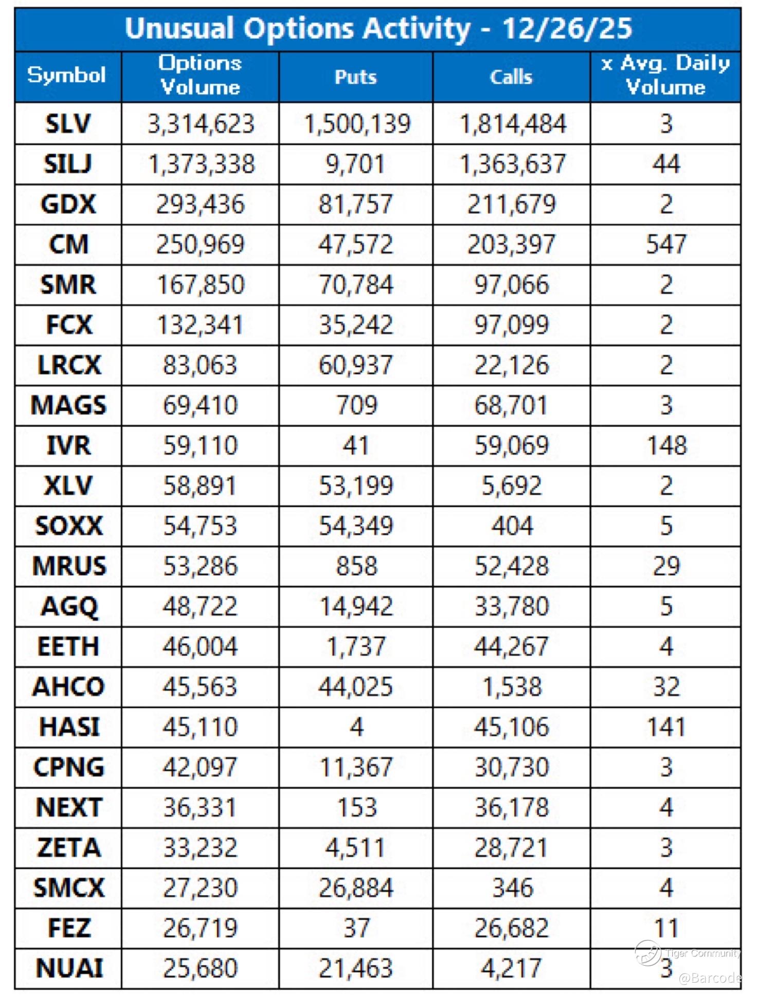 $SILJ tells a different but complementary story. Over 1.36 million calls versus fewer than 10,000 puts signals outright directional conviction in higher-beta silver exposure. When traders lean this hard into juniors, it usually reflects belief the trend still has fuel, not that it’s finished.