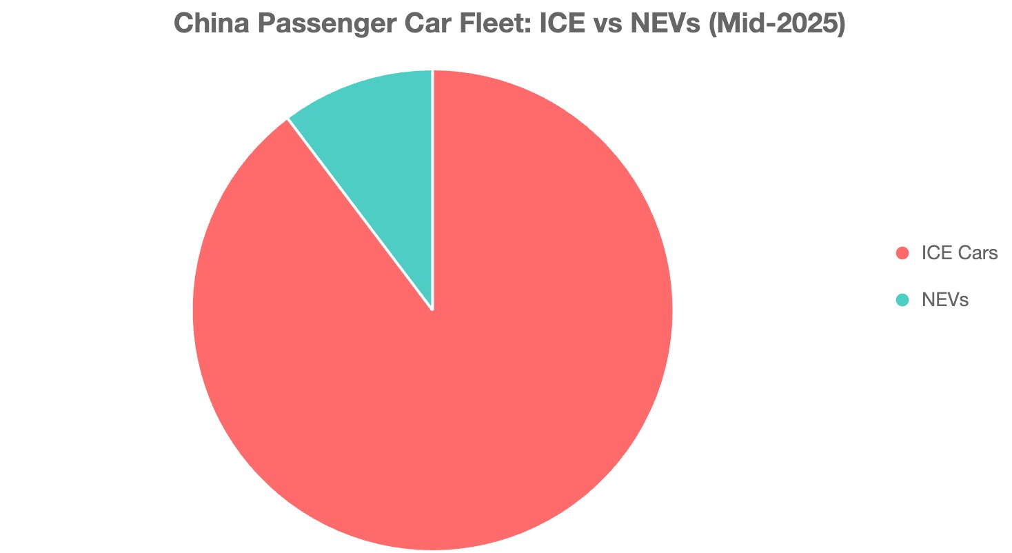 Less than 10% of the total number of cars on China's roads are classified as New Energy Vehicles (NEVs).