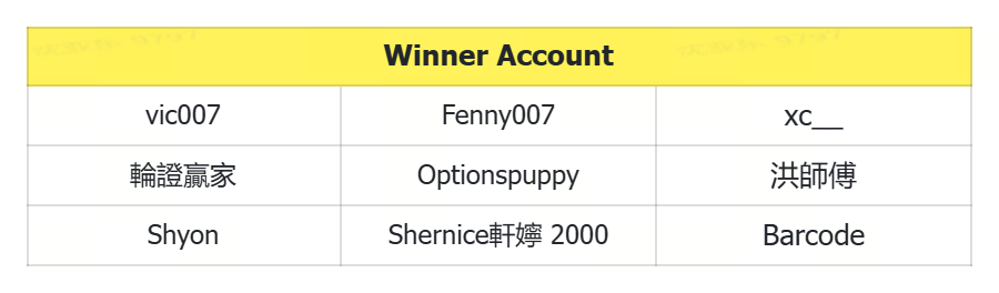 Yesterday's winners: