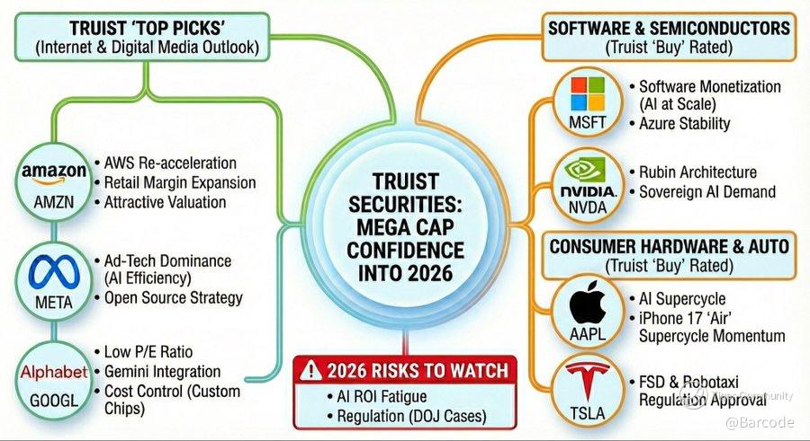 β’ Truist highlights sustained mega-cap confidence while flagging AI ROI fatigue and regulatory risk as key 2026 watchpoints.