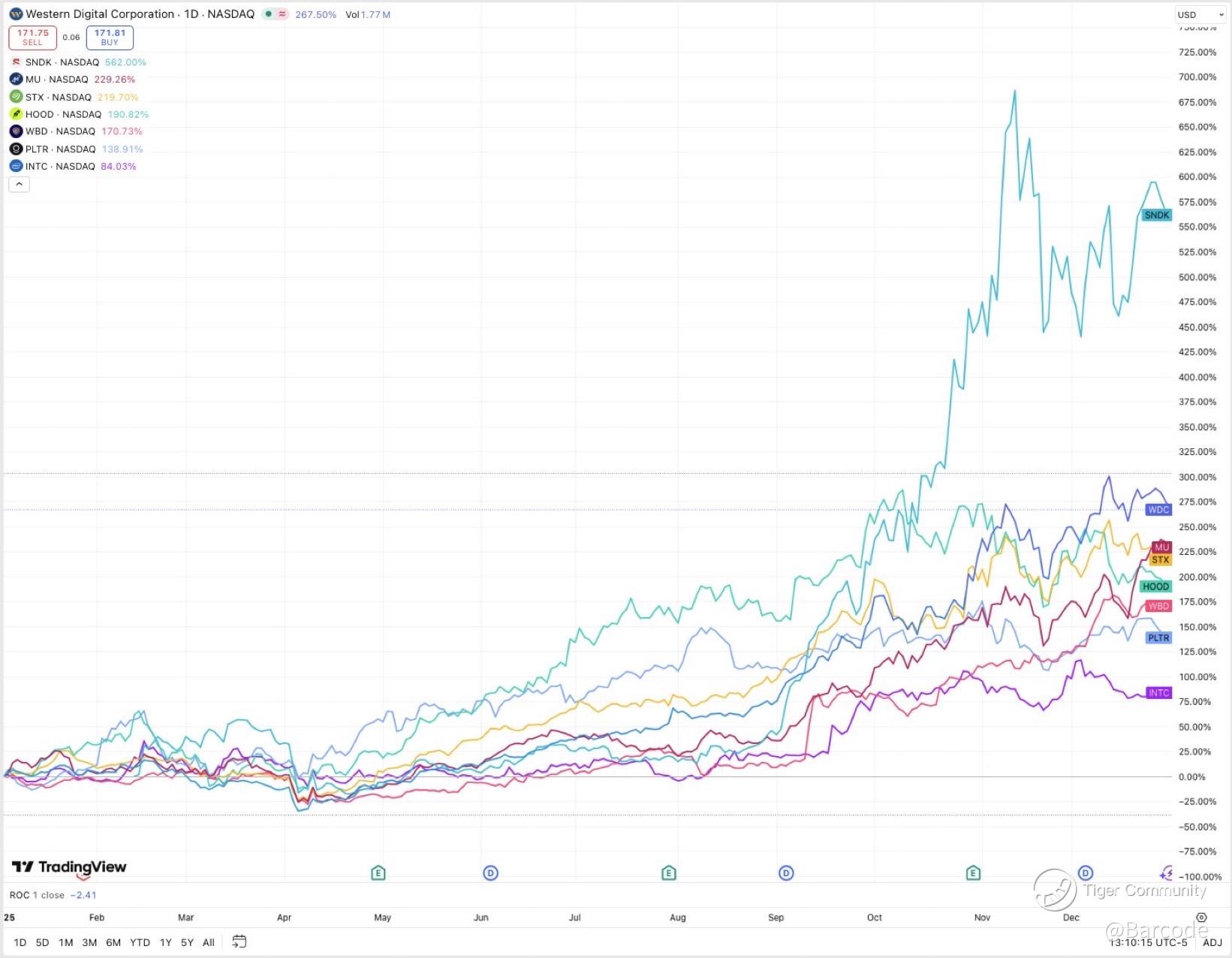 Massive winners across semiconductors, tech, and retail. Concentrated leadership paid.