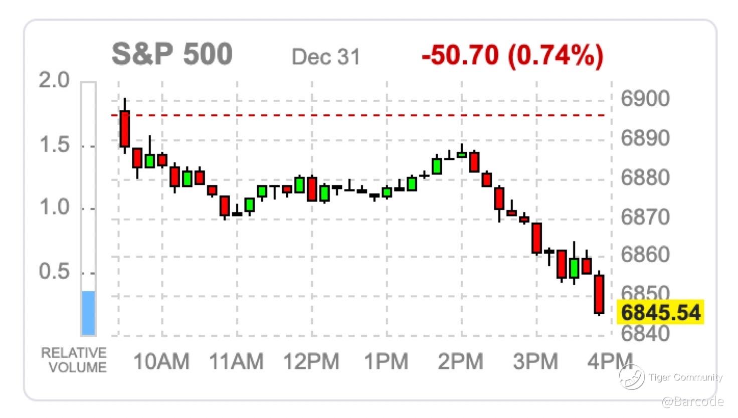 One for the history books. The S&P 500 closing red today marked its 5th straight year of closing the final trading day down, its longest such streak since 1953, and the most negative final trading day of the year since 2009. Congrats, $SPX π.