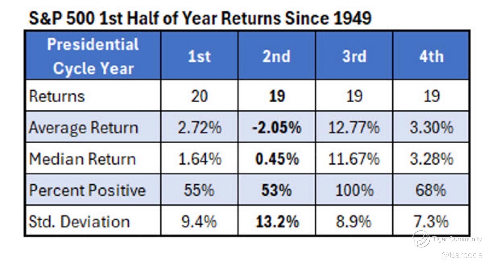 Presidential cycle stats since 1949 reinforce the same asymmetry. Year 2 is the weakest, average return 4.62%, median 1.06%, only 53% positive, and the highest standard deviation at 20.2%. The first half of Year 2 is worse, average –2.05%, median 0.45%, only 53% positive, and standard deviation 13.2%. I don’t need a narrative to respect that, I need discipline.