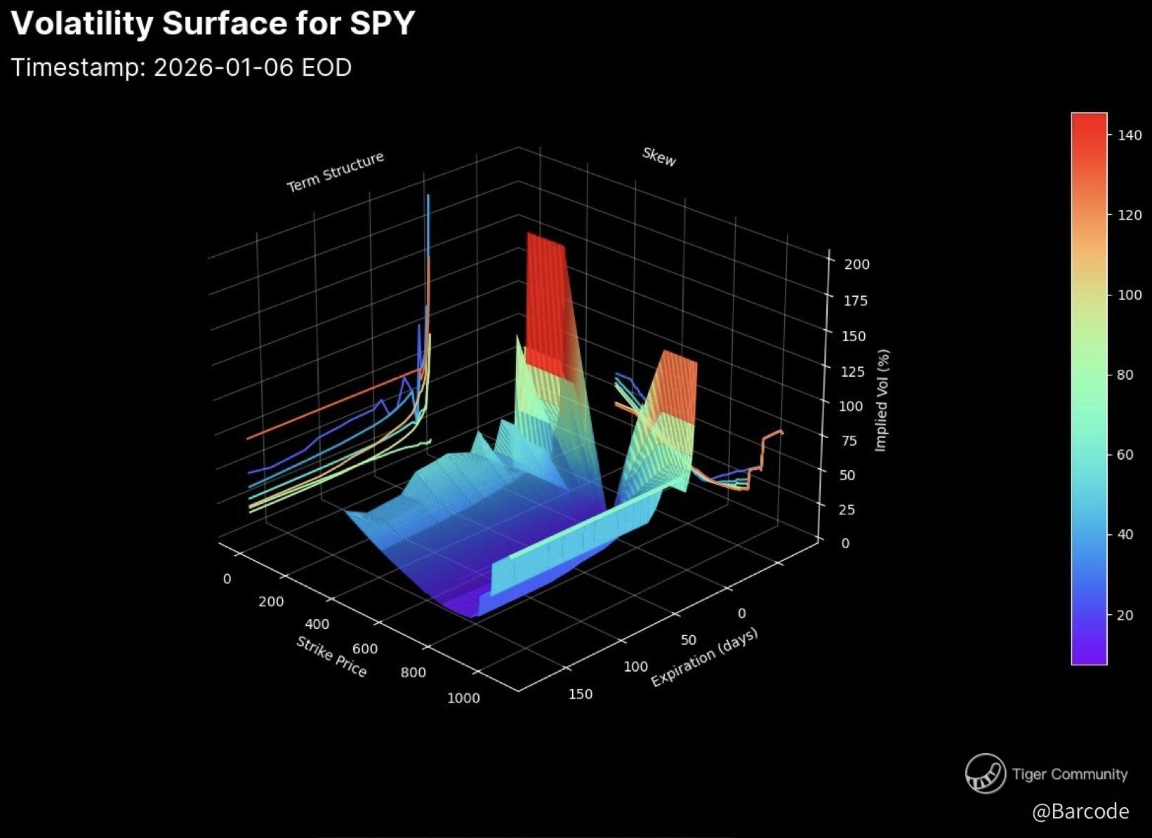 On $SPY, the vol surface is calming down. The ATM term structure is lower across maturities, traders are pricing less near-term volatility. The smile has eased too, puts still cost a bit more, but overall protection demand is lighter. A market leaning toward stability. $SPY puts just crossed call again.