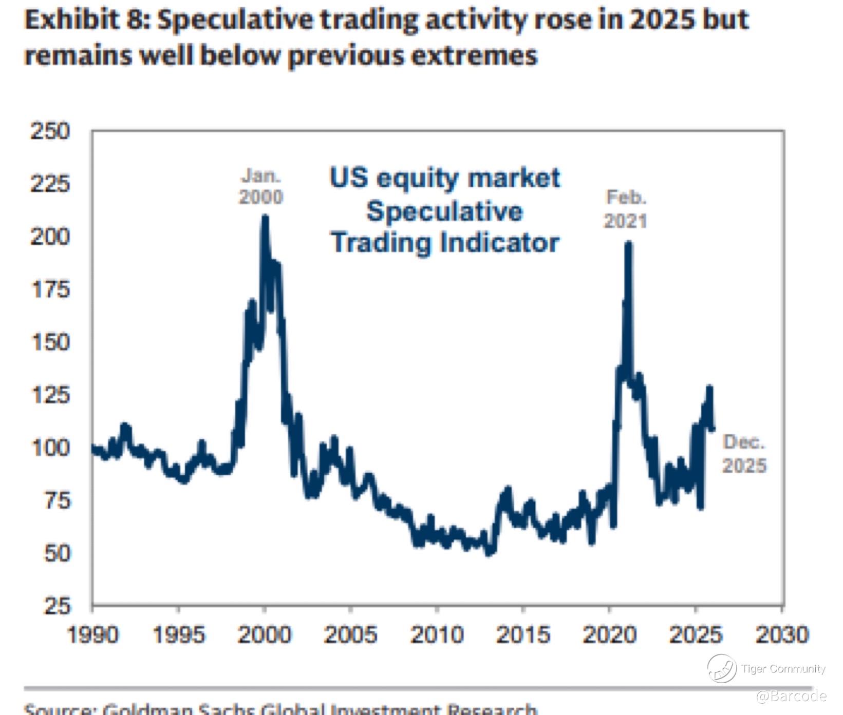 I’m also watching the froth indicator properly. Goldman Sachs’ Speculative Trading Indicator spiked in 2025 but stays well below the 2000 dot-com and 2021 meme or SPAC mania extremes. Extended valuations, sure. But this mutes “AI bubble” hysteria because it’s more earnings and AI capex-driven than pure froth. I stay cautiously bullish, not complacent.