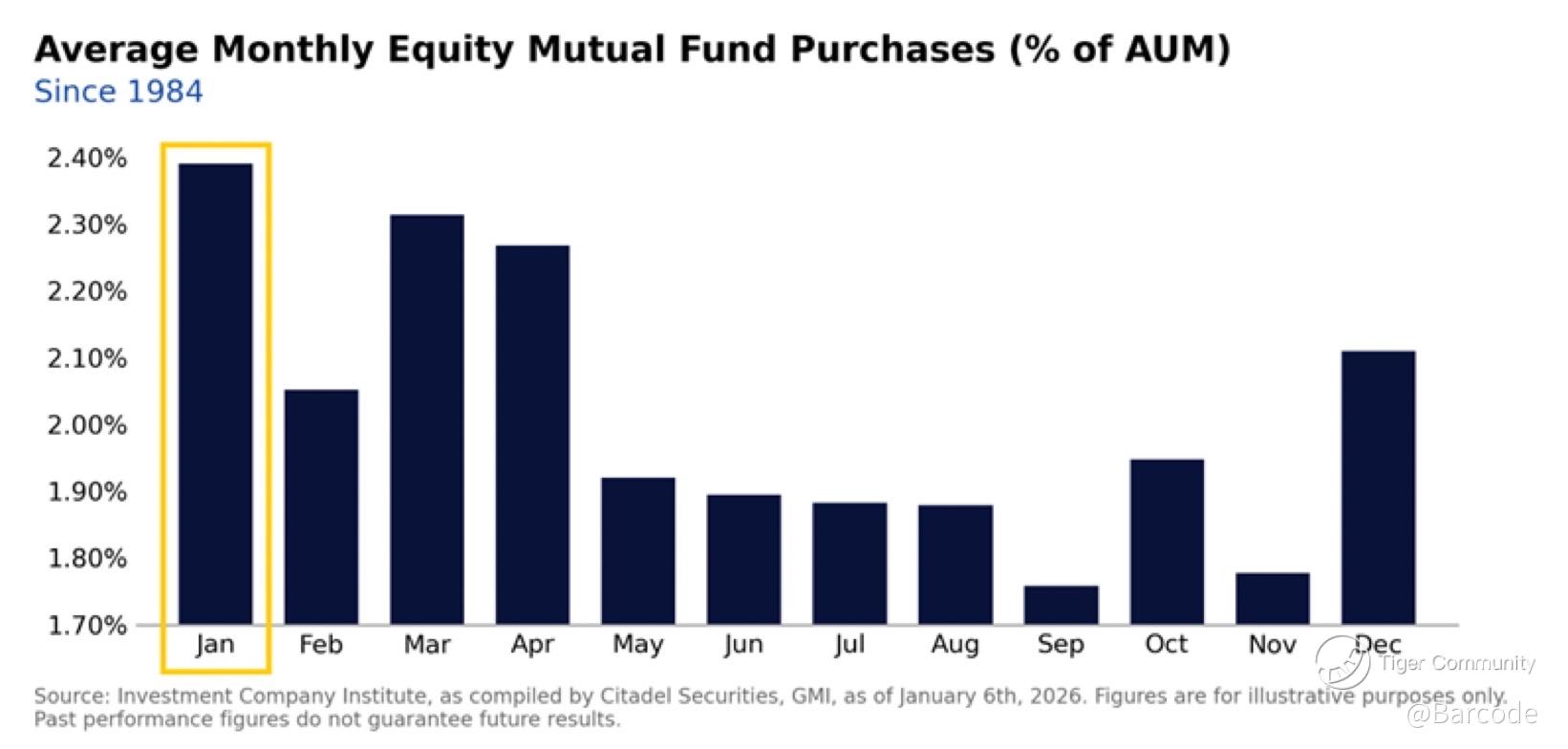 January is historically the strongest month for equity capital deployment. Money market cash levels sit at a record $7.6 Trillion. As markets reopen after the holiday pause, capital tied to retirement contributions (401k, 529), year-end bonuses, and discretionary PWM mandates moves quickly from cash into passive risk assets. This is particularly true when money market yield levels have declined.