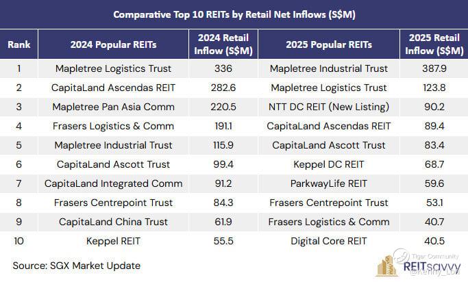 At first glance, the REITs attracting the strongest retail inflows appear unsurprising: large-cap, government-linked, and highly familiar names. The true signal, however, lies in what is absent from retail portfolios.