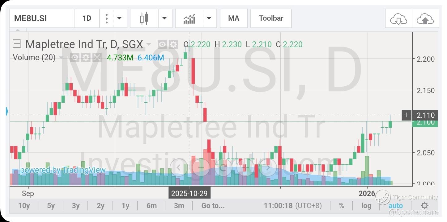 The price has fallen off from 2.22 to closed 9 cents lowered at 2.13 after the results was released! It seems that market doesn't like the latest financial numbers! DPU decreased 5.6% to 3.18 cents. The only silver lining spotted was, the weighted average lease to expiry (WALE)of the Overall Portfolio