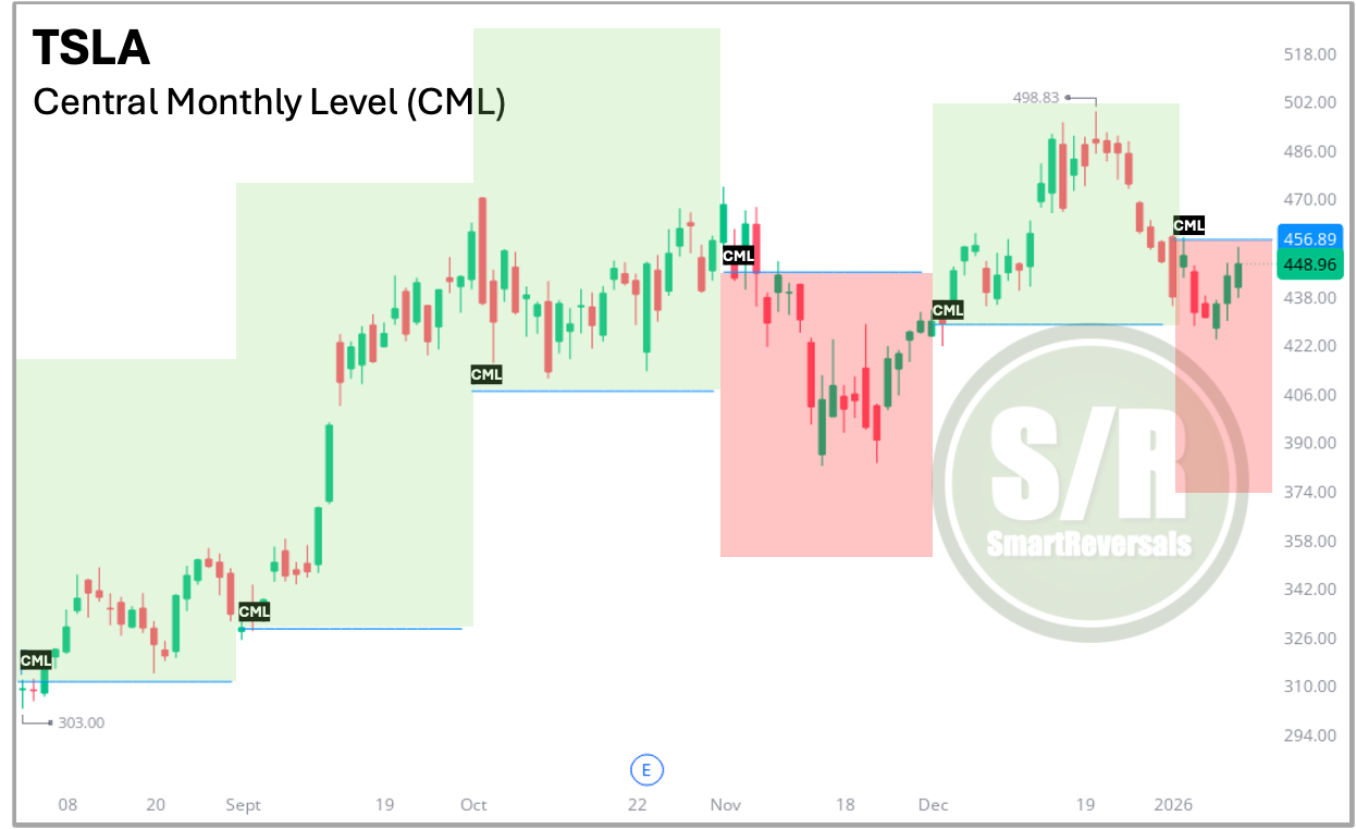 Together, the Central Monthly Level (CML) and Central Weekly Level (CWL) serve as essential tools for assessing momentum and validating trade setups across higher timeframes. When combined with technical indicators, these Central Levels form the foundation of the SmartReversals methodology. As long as price remains above both the CWL and CML, broader momentum remains constructive and pullbacks are generally viewed as buying opportunities. When these levels fail, market structure weakens, helping traders avoid remaining stuck in losing positions.