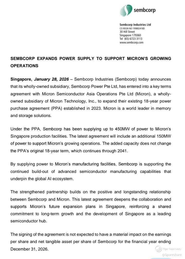 Under the PPA, Sembcorp has been supplying up to 450MW of power to Micron’s