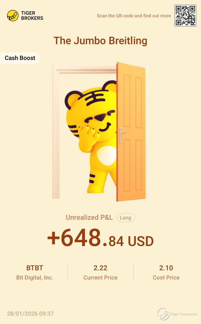 $Bit Digital, Inc.(BTBT)$ This run on BTBT really felt good — with its mining and Ethereum staking play finally getting some market recognition and the stock taking off. Watching the gains stack up was such a satisfying feeling — holding has paid off!