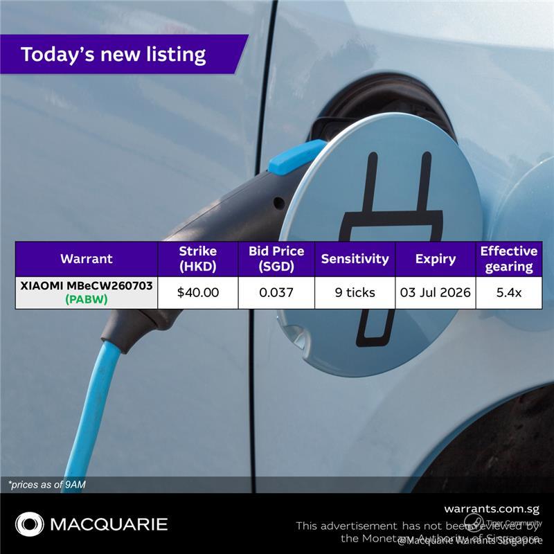 🆕Macquarie Warrants has listed a new call warrant $XIAOMI MBeCW260703(PABW.SI)$ (https://warrants.com.sg/tools/livematrix/PABW) tracking $XIAOMI-W(01810)$