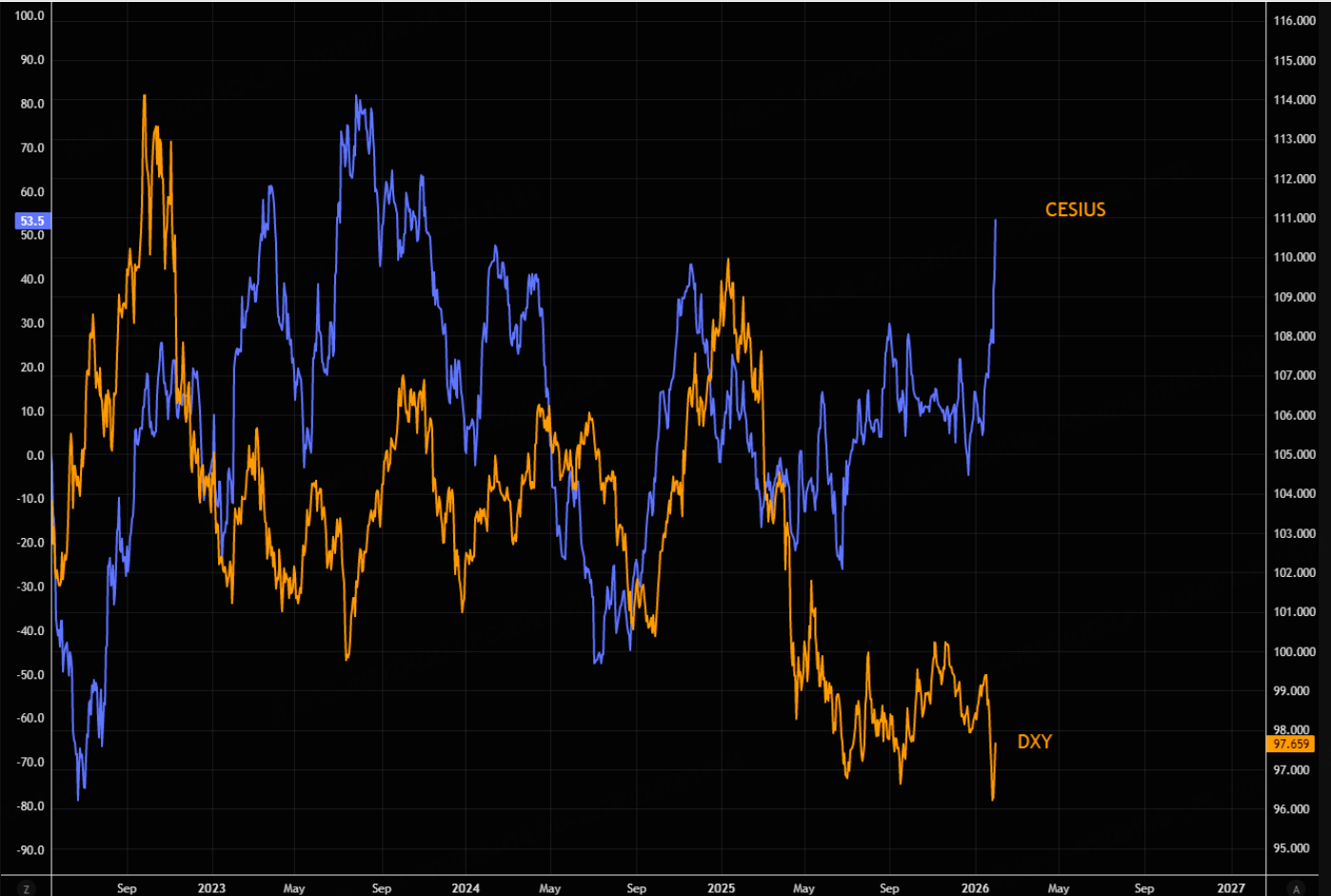 In addition, note that a Goldman Sachs research report compares the fit between the US dollar index and Citi’s US Economic Surprise Index.