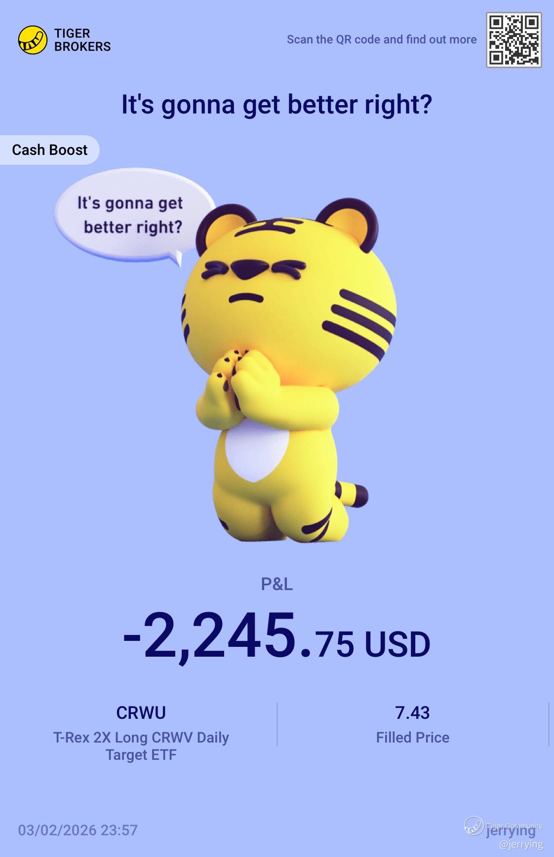 $T-Rex 2X Long CRWV Daily Target ETF(CRWU)$ another bloodbath i cannot escape