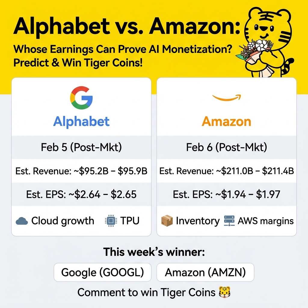 This week, $Alphabet(GOOG)$, with a market cap exceeding $4 trillion, and $Amazon.com(AMZN)$, currently streamlining its organization, will take center stage. This time, the market is looking beyond "Large Model" narratives to focus on real margins and ROI.