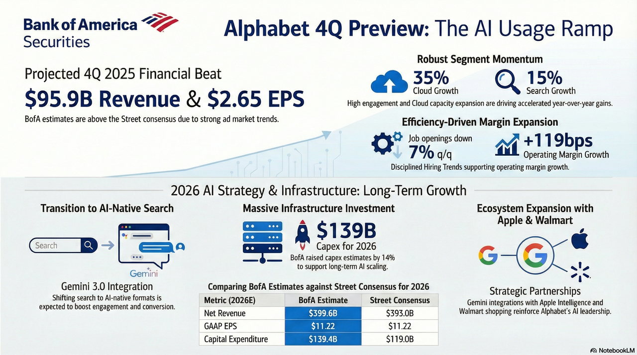 Power of Gemini 3.0: BofA expects Search growth to rise to 15% (from 13%), driven by higher conversion rates from AI Search.