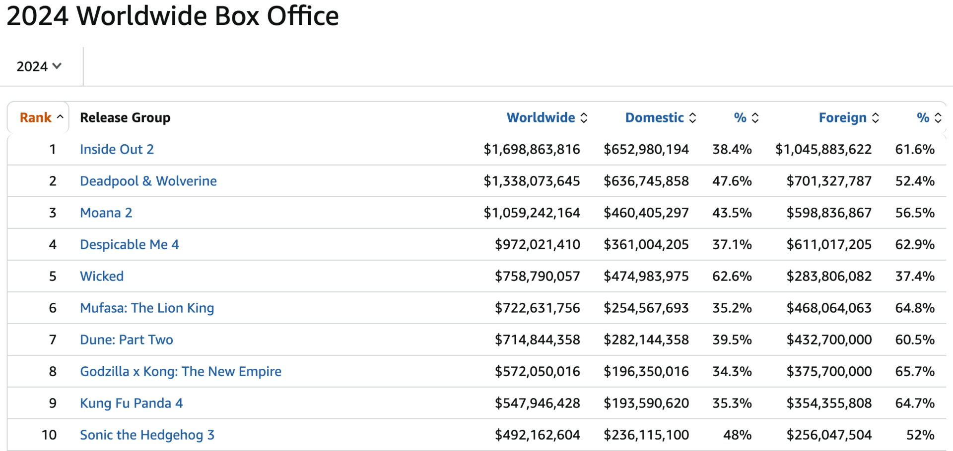 In 2024, the company had the top 3 at the box office globally.