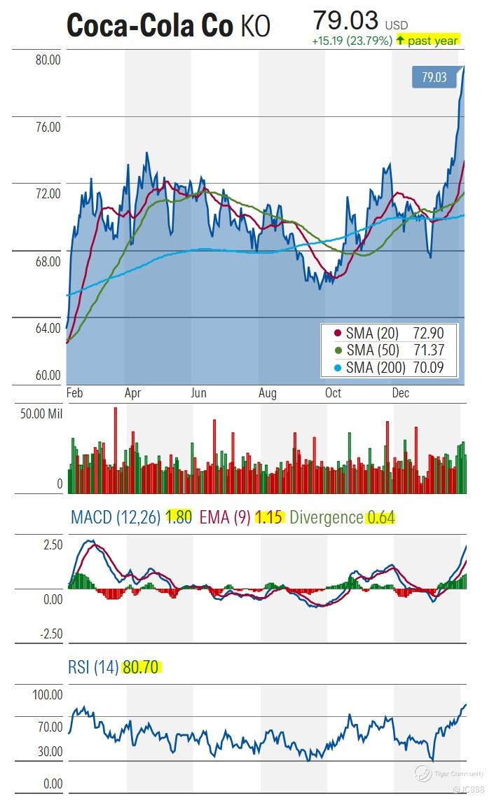 Afterall, it has consistently demonstrated its classic "safe haven" appeal, with KO climbing for seven consecutive sessions to hit an all-time high of $79.03 as of Fri, 6 Feb 2026 closing.