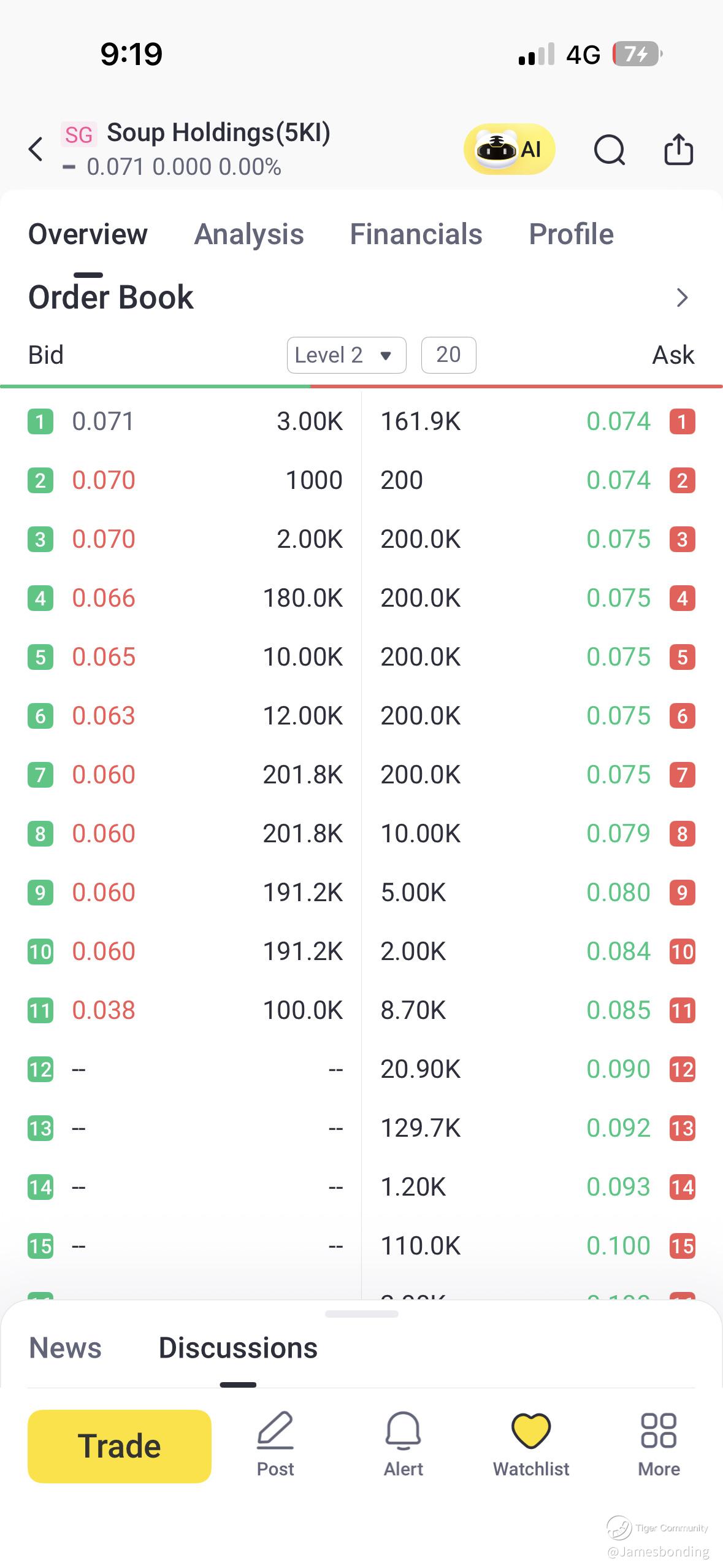 $Soup Holdings(5KI.SI)$ I provide a floor price of 6 cents for 800,000 soup restaurant shares. Please sell all your shares to me so that my shares can reach 4 million shares.