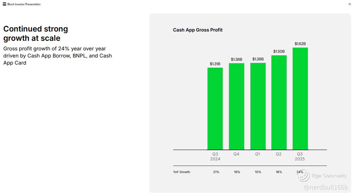 Cash App Monetization: Specifically, Gross Profit per Monthly Transacting Active (MTA). In Q3, this hit $94 (up 25% YoY). If this continues to climb, it proves that Cash App is successfully evolving from a simple P2P app into a primary banking engine.
