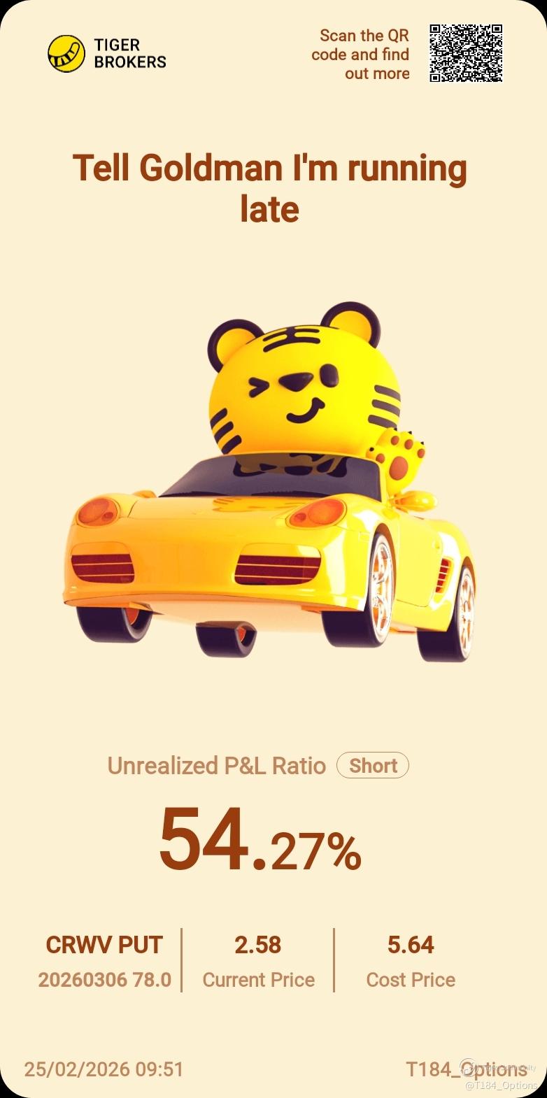 I’m holding a CRWV Put (78 strike, Mar 6 2026 expiry), entered with a clear bearish view and enough time for the thesis to work. This wasn’t a reaction trade and it definitely wasn’t a gamble.