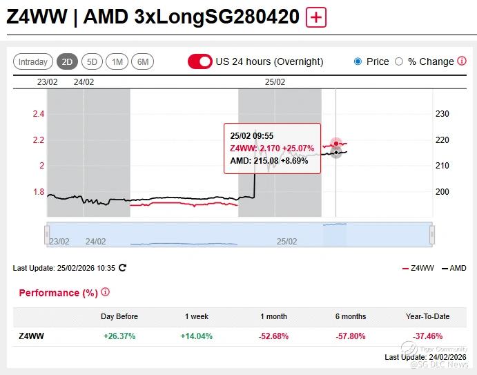 AMD 3x Long Rises +26% as tech stocks rebound; Nvidia Earnings due 25 Feb after US market close