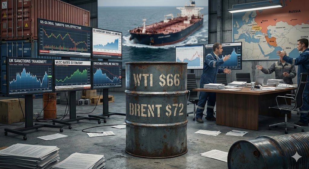 The global crude oil market is currently navigating a period of intense crosscurrents, characterized by substantial macroeconomic policy shifts, escalating geopolitical interventions, and surprising domestic inventory builds that are capping outright price momentum. West Texas Intermediate futures edged lower to settle near the $66 per barrel mark, while Brent hovered just below $72 per barrel, as traders digested the implementation of the new US global tariff regime, which officially came into effect at a 10% rate. The market is also heavily scrutinizing the massive 11.4 million barrel surge in United States crude oil inventories reported by the American Petroleum Institute, an unexpected build that vastly exceeded the anticipated 1.85 million barrel increase. Concurrently, the geopolitical landscape remains exceptionally fraught. The United Kingdom government announced aggressive new sanctions against the Russian oil pipeline operator Transneft, an entity responsible for over 80% of Russia's crude exports, effectively targeting Moscow's energy revenue and its so-called "shadow fleet" of tankers. As a direct consequence of these widening sanctions and lingering fears of a United States and Iran military confrontation, the cost of shipping crude has skyrocketed. Chartering a Very Large Crude Carrier to transport crude from the Middle East to China has more than tripled since the start of the year, reaching upwards of $170,000 per day—the highest freight rate seen since April 2020. In Eastern Europe, supply security concerns prompted the Hungarian government to authorize the release of 250,000 barrels of crude oil from its strategic reserves to prioritize the MOL refinery, following a halt in oil deliveries through the critical Druzhba pipeline.