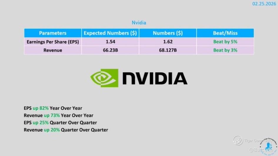 $NVIDIA(NVDA)$ $Alphabet(GOOGL)$ $Broadcom(AVGO)$ 📊⚡ $NVDA Q4 FY26: Record Revenue, Accelerating EPS, and a $206B Intraday Repricing ⚠️📉